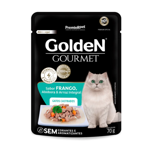 Ração Úmida Golden Gourmet para Gatos Castrados Sabor Frango Sache - Sabor e Saúde em Cada Garfada!